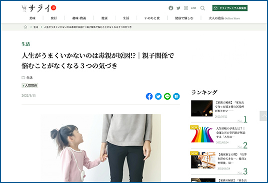 サライに「親子関係で悩むことがなくなる3つの気づき」が掲載されました。