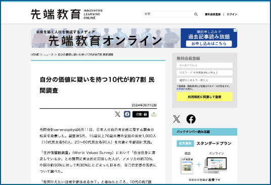 先端教育オンラインに弊社の「日本人の自己肯定感に関する調査」が掲載されました。