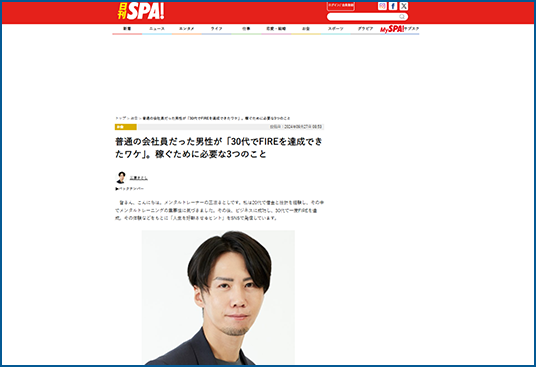 日刊SPA!に「普通の会社員だった男性が「30代でFIREを達成できたワケ」。稼ぐために必要な3つのこと」が掲載されました。