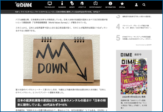 @DIMEに弊社の「日本人の自己肯定感に関する調査」が掲載されました。